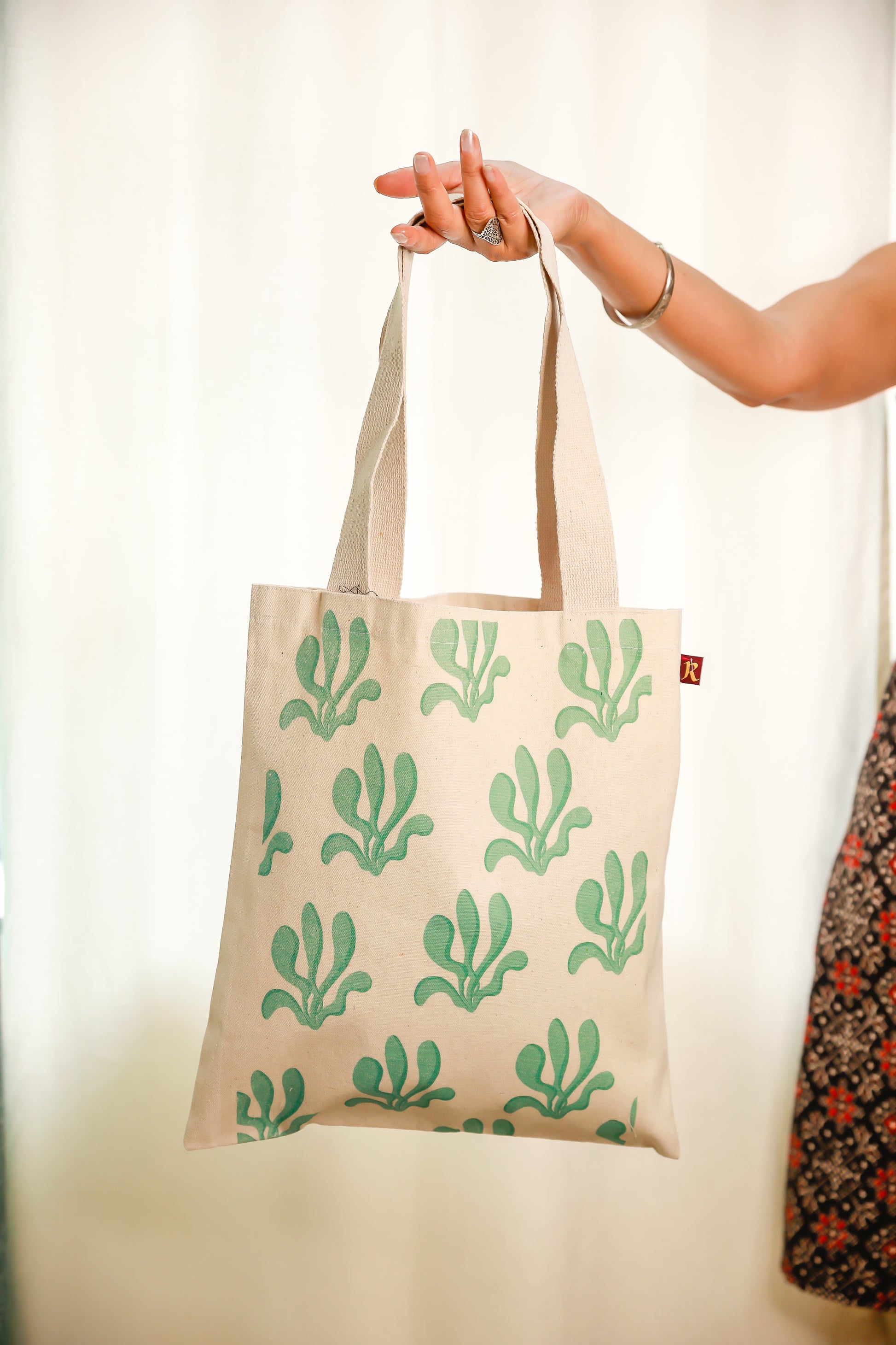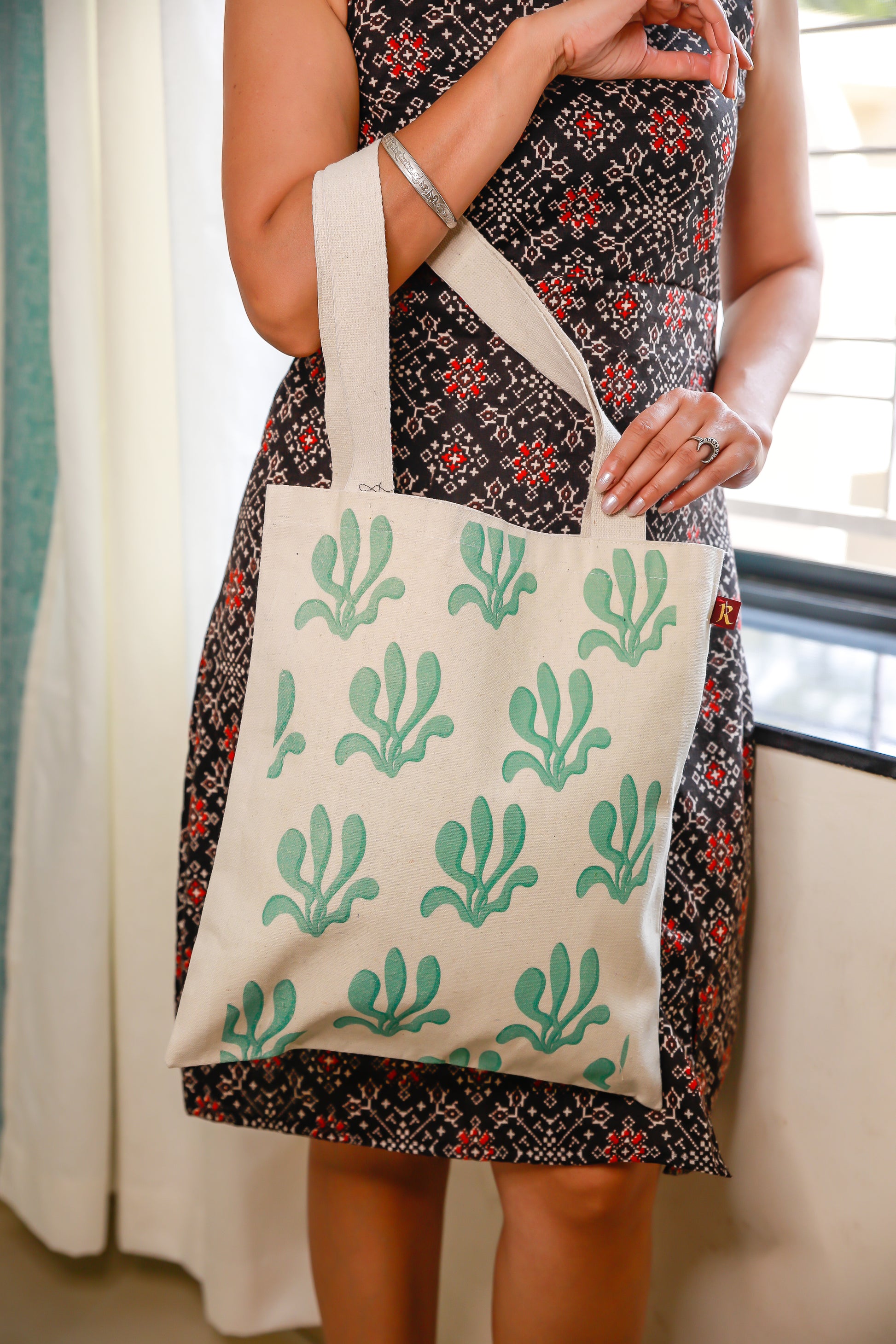 This medium size flat tote bag is a perfect sustainable option and is a great fit for carrying school books, folders, can be used for travels and errands. This bag can carry up to 05 kg of weight.