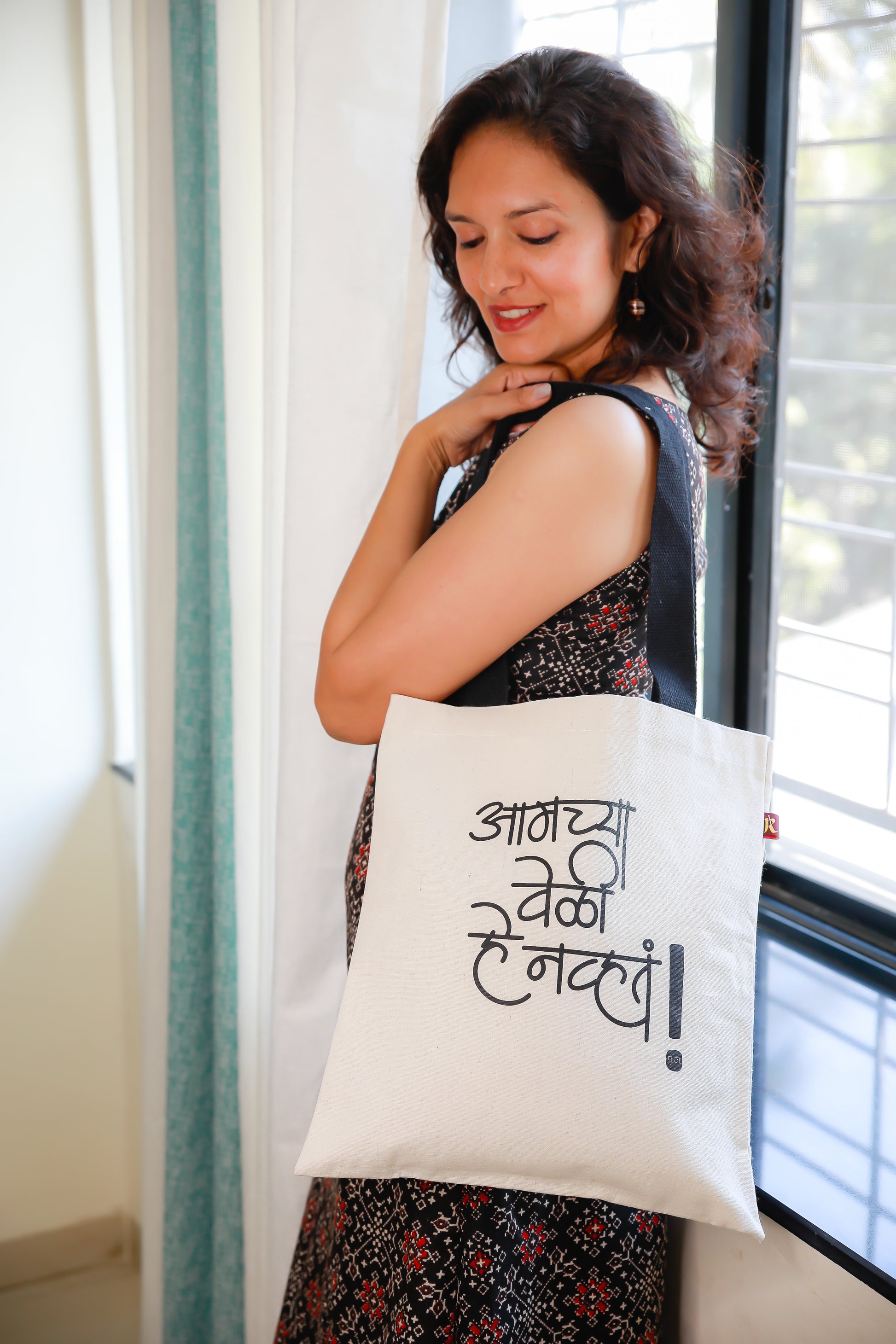 This medium size flat tote bag is a perfect sustainable option and is a great fit for carrying school books, folders, can be used for travels and errands. This bag can carry up to 05 kg of weight.