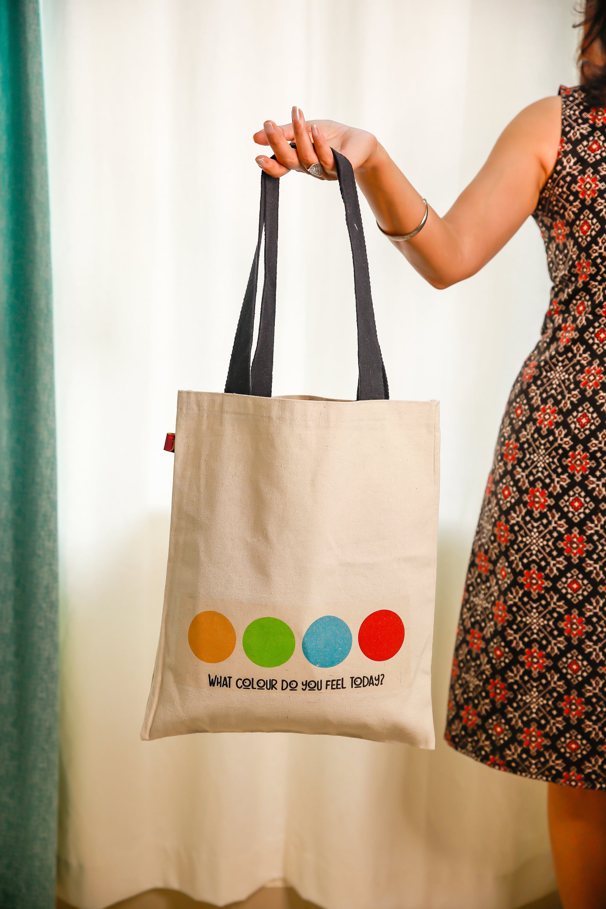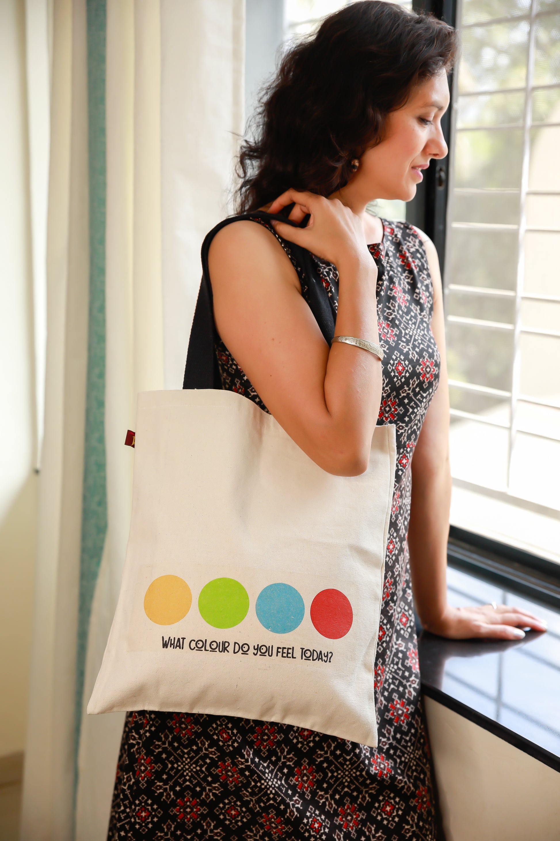 This medium size flat tote bag is a perfect sustainable option and is a great fit for carrying school books, folders, can be used for travels and errands. This bag can carry up to 05 kg of weight.